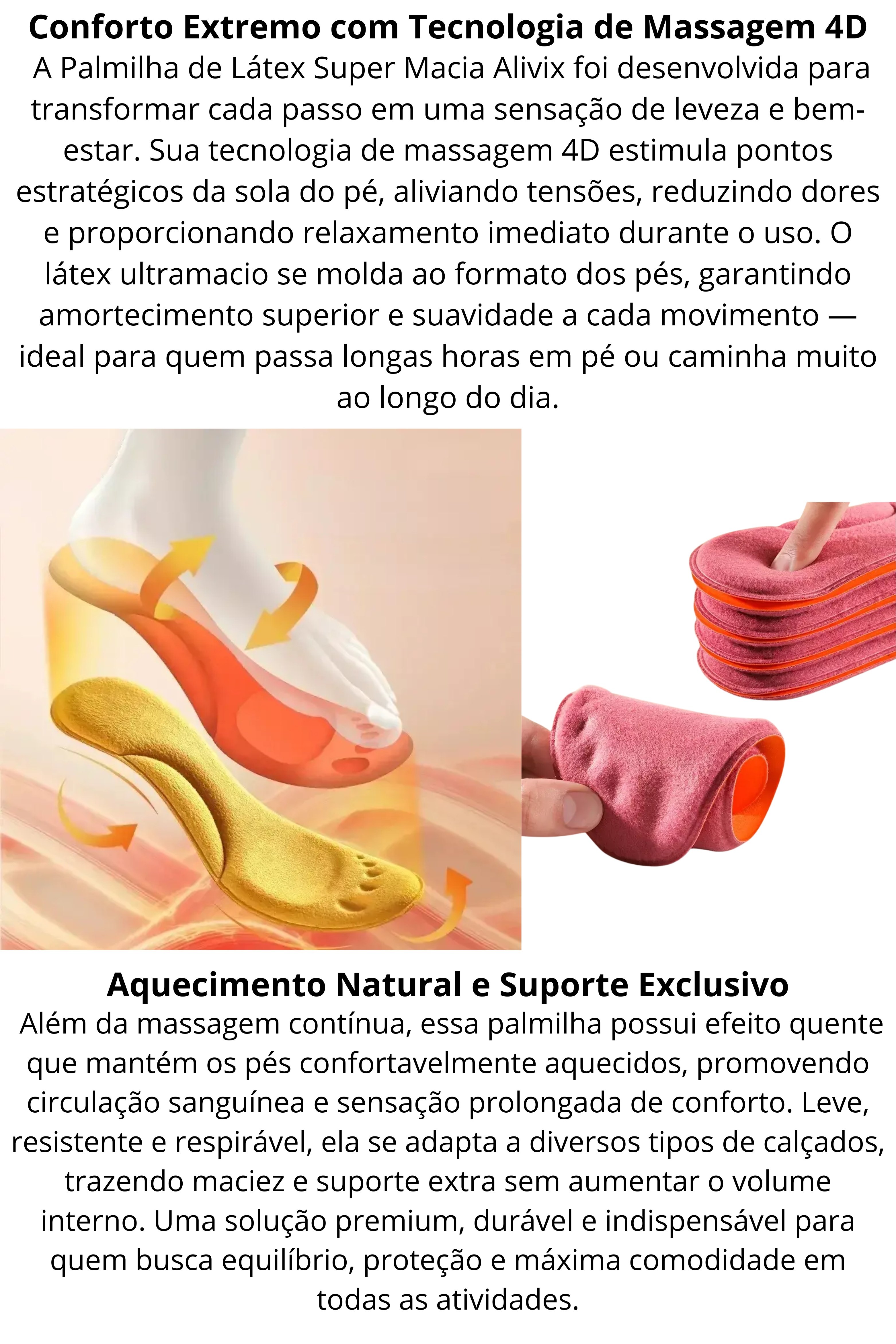 Palmilha de Látex Massagem 4D Super Macia Para Pés Alivix